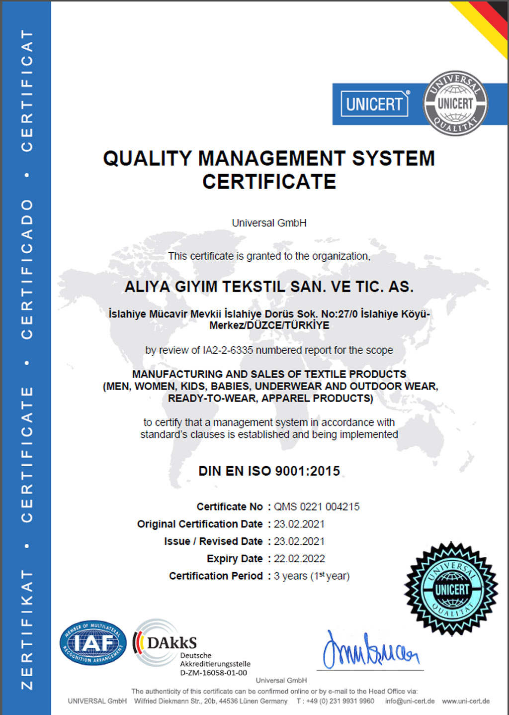 Aliya Giyim Tekstil Sanayi ve Ticaret A.Ş.